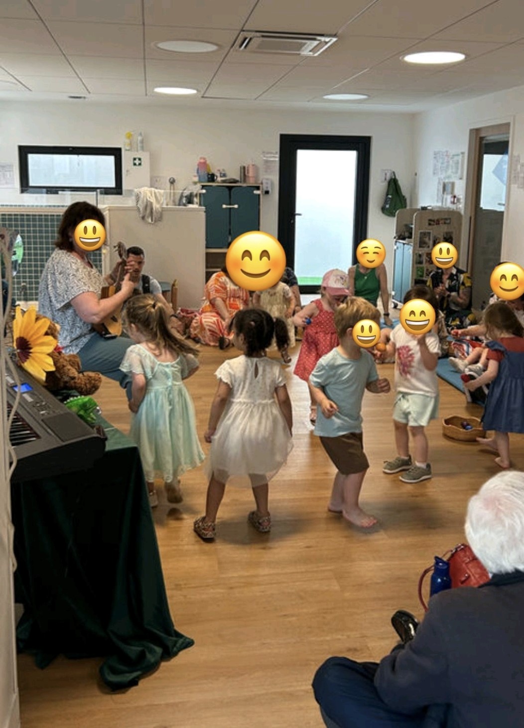 Chansons, comptines, petites percussions, djembé, ukulélé, piano...